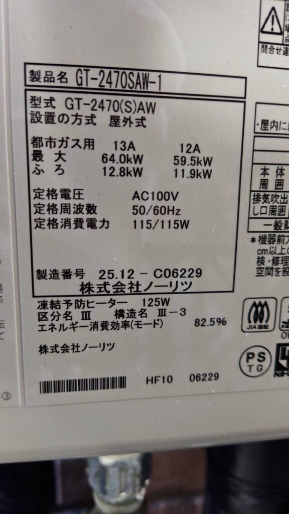 ノーリツ 給湯器 ↓ ノーリツ 給湯器 GT-2470SAW-1 |