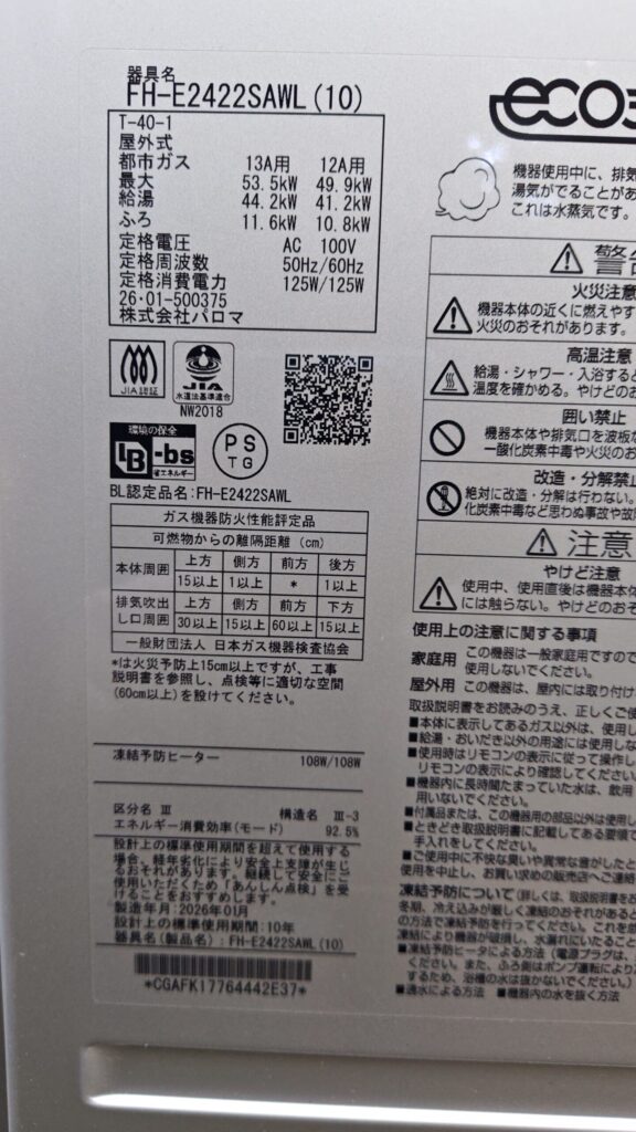 ノーリツ 熱源機 ↓ パロマ 給湯器 FH-E2422SAWL |