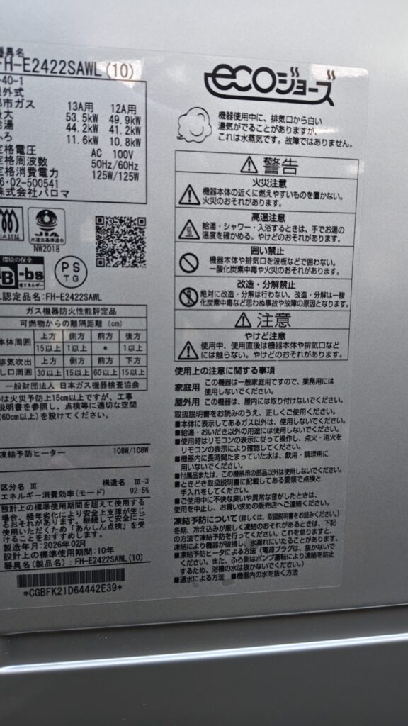 【施工事例】茅ヶ崎市K様。パロマ給湯器24号オート エコジョーズに交換させていただきました。