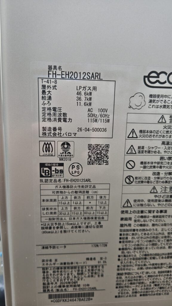 【施工事例】小田原市K様。パロマ給湯器20号オート エコジョーズに交換させていただきました。