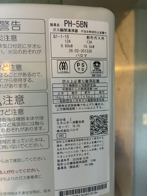 パロマ 湯沸器 PH-5BN |